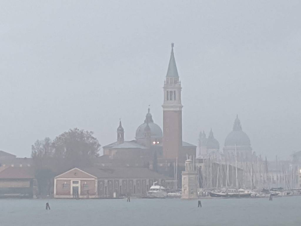 Our arrival in the city was delayed by morning fog, with canal-hugging buildings shrouded in mist as our ship slowly made its way to its designated dock. It made for mystical photo opportunities. Ship stewards passed coffee and pastries in the early dawn light to awed passengers pushing against deck rails even as the drizzle turned to pounding rainfall. The panoramic windows of interior lounges were equally crowded. The day dawned grey and chilly, but then a rainbow appeared. We had arrived in Venice.
