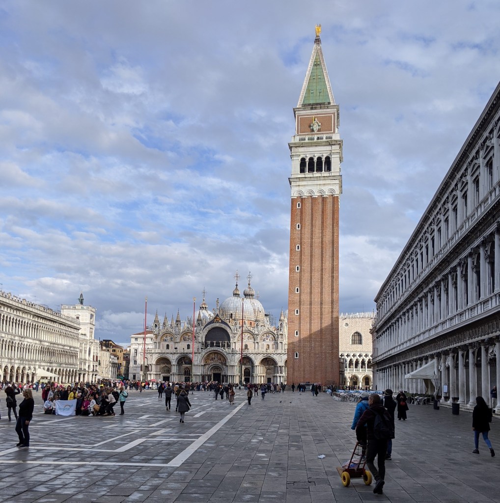As it turned out, the sun emerged as we made our way to St. Mark’s square. This was my first trip to Venice. I was not prepared for the sensory overload of entering the square. Any description seems quite inadequate. I can only imagine how it must feel when crowded with tourists. I am so happy to have had the chance to see it in its stillness.