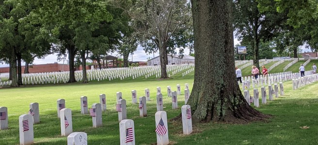 I was privileged last Friday to be one of a small group who volunteered to place flags in a single section of the Little Rock National Cemetery for Memorial Day. In a little more than two hours, our group of nine decorated more than 1,800 headstones with the small, simple reminders that a nation still honors those who died in wars fought to defend the freedoms we now enjoy.