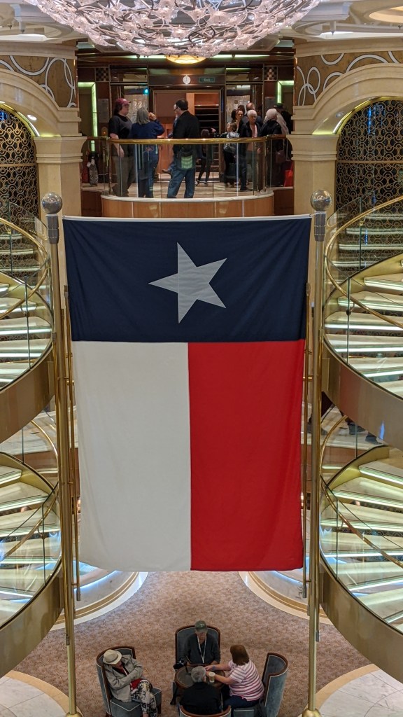 On another Princess cruise several years ago, sailing out of the Port of Houston, I was privileged to meet and interview a lady who, at that time, spent much of each year aboard ship. It was a different ship, but even then she was a “most traveled” and much-loved passenger. I noted that the crew was particularly solicitous and always saved her same table in her favorite lounge for a pre-dinner glass of wine.