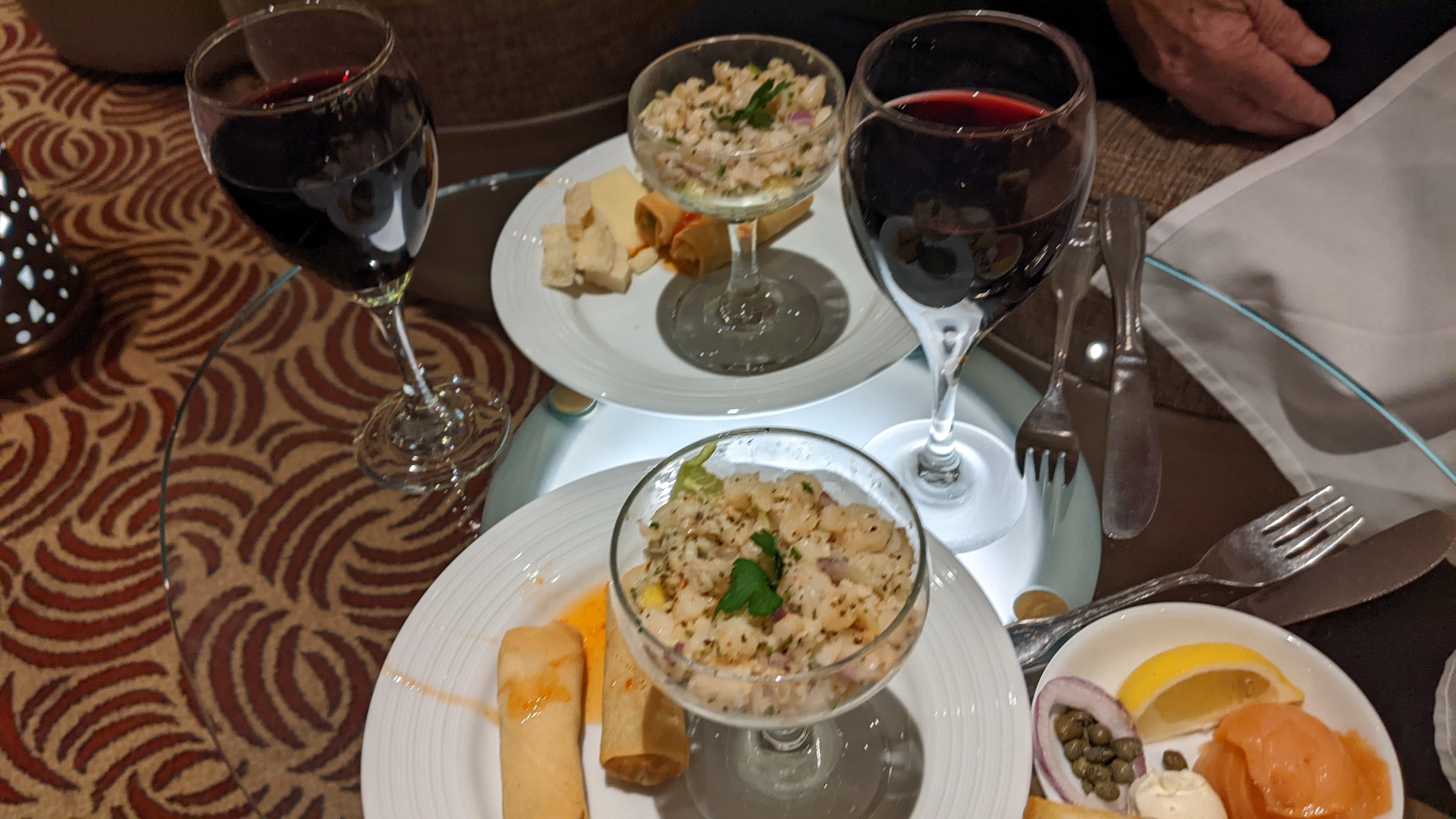 On this voyage, for some reason, dinner menu options were a bit “thinner” than we had expected but choices and portions were certainly ample. Service at times seemed slightly disorganized or rushed, and the visual presentation of some dishes was below the standard we have come to expect and appreciate from our times aboard other ships in the fleet. However, that’s a passing observation and certainly did not measurably detract from our onboard experience. We ate very well in each of the main dining rooms, whether for lunch or dinner.