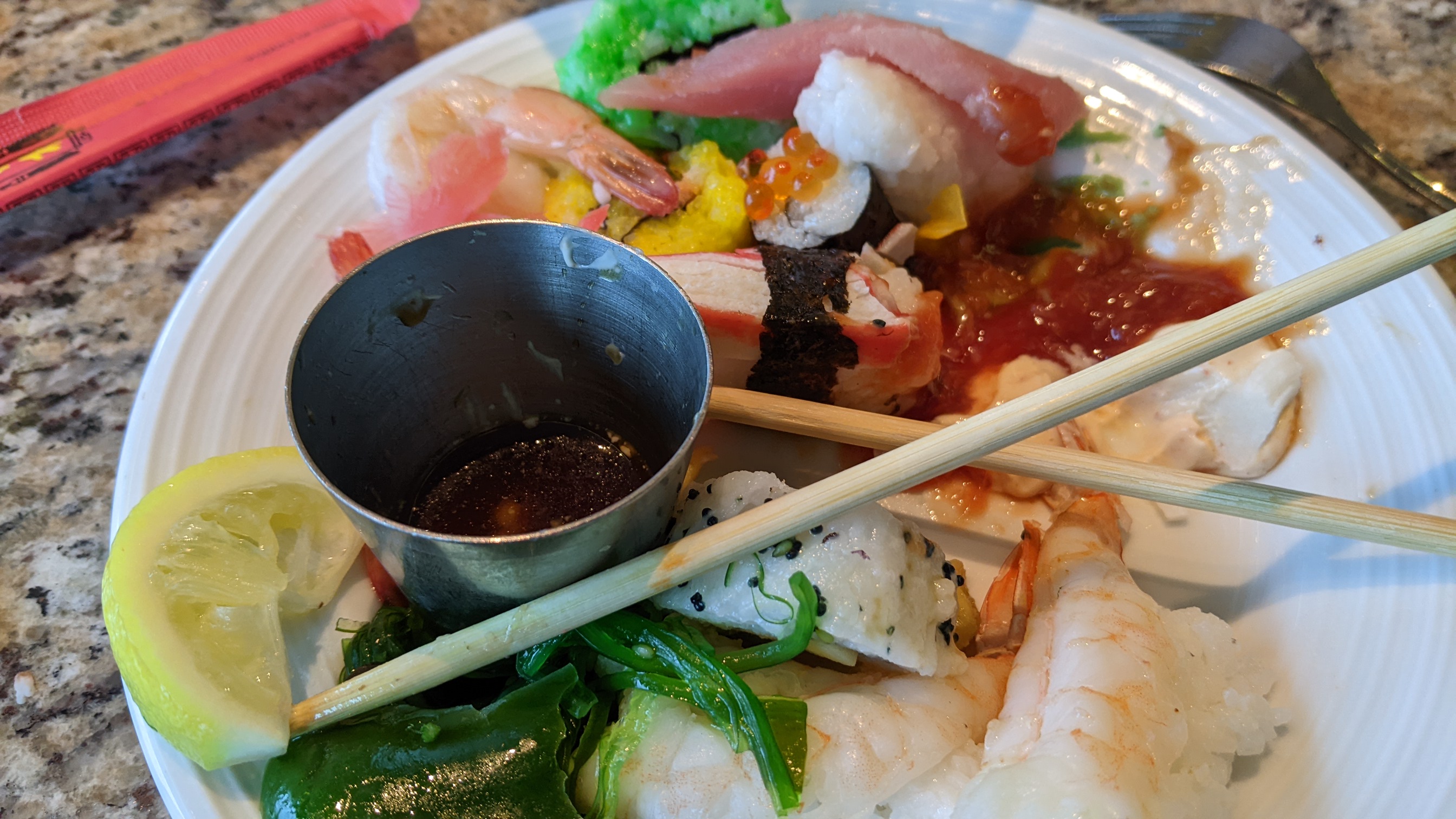 A spectacular feature aboard Regal one day on this cruise was a midday sushi buffet — What a feast!