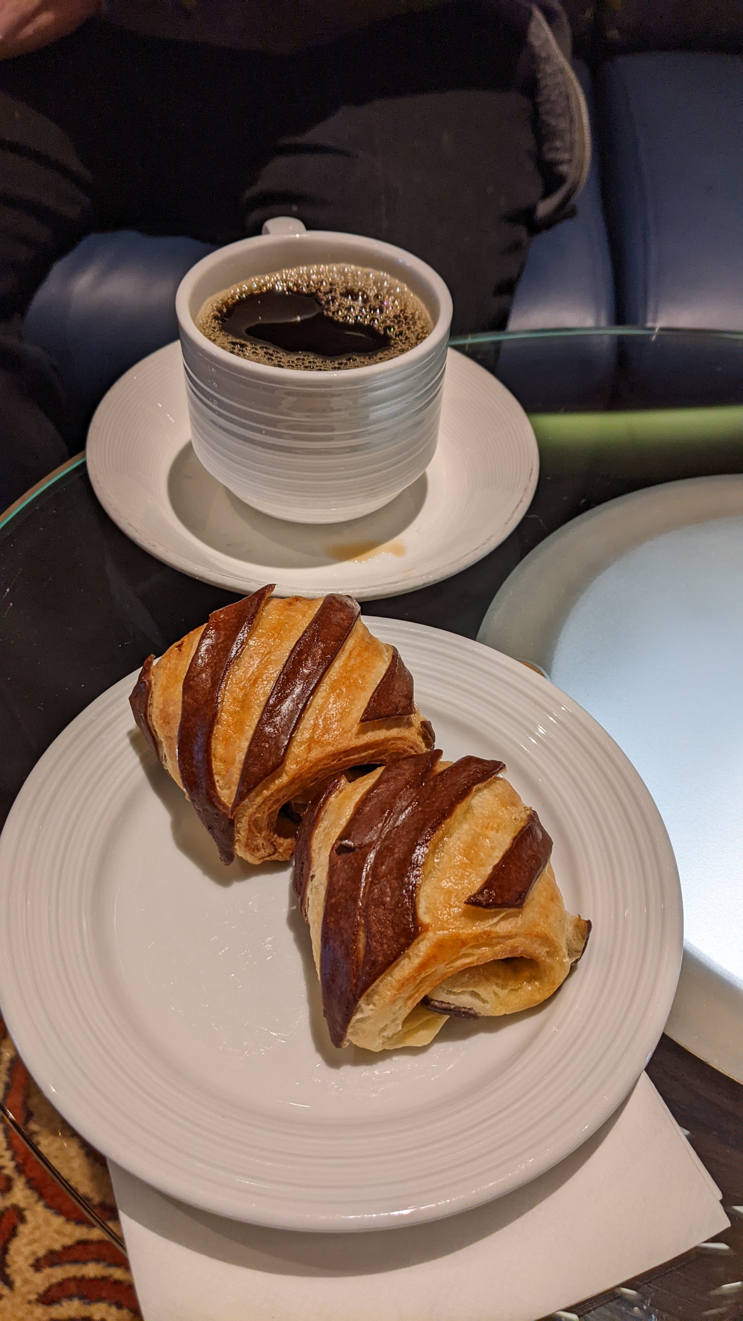 One of our favorite cruise traditions is to order a light breakfast, usually croissants, fruit, and coffee, delivered to our stateroom each morning. It’s a pampering, relaxing way to begin the day and a tradition we can’t seem to break. But why would we want to? But that didn’t mean we didn’t find other places aboard to enjoy breakfast and coffee.