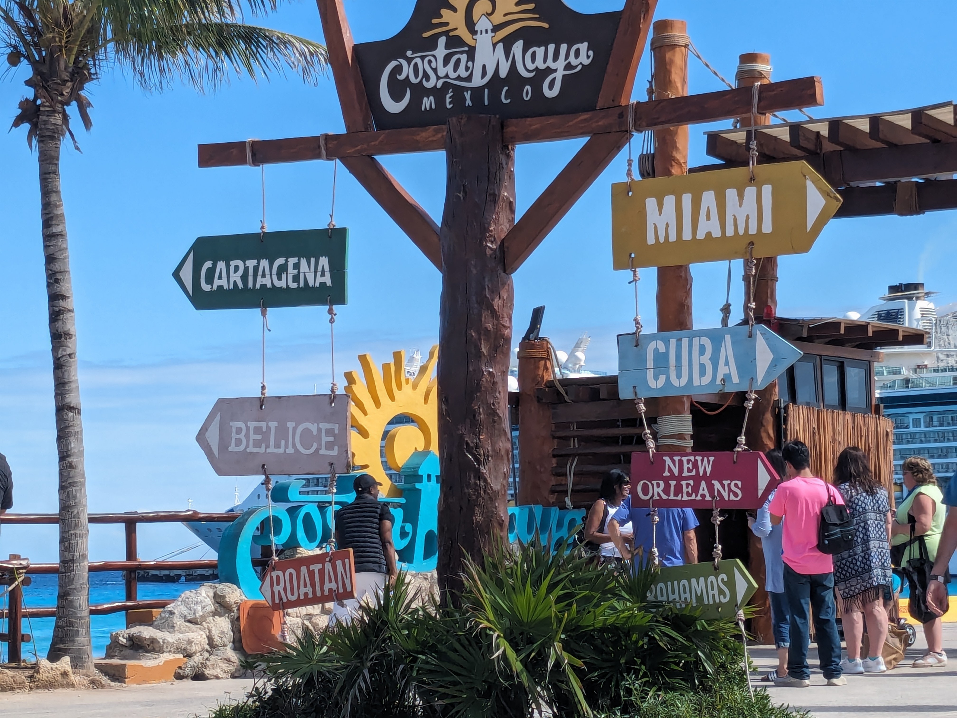 When we disembarked, we walked to the far side of the port compound and then took a brief jitney ride to the designated meeting point outside the port area. The fee was minimal. Guides from multiple companies waited there to ferry passengers to local beaches or other island destinations. We visited with local tour operators and fellow cruise passengers as we awaited our driver/guide.