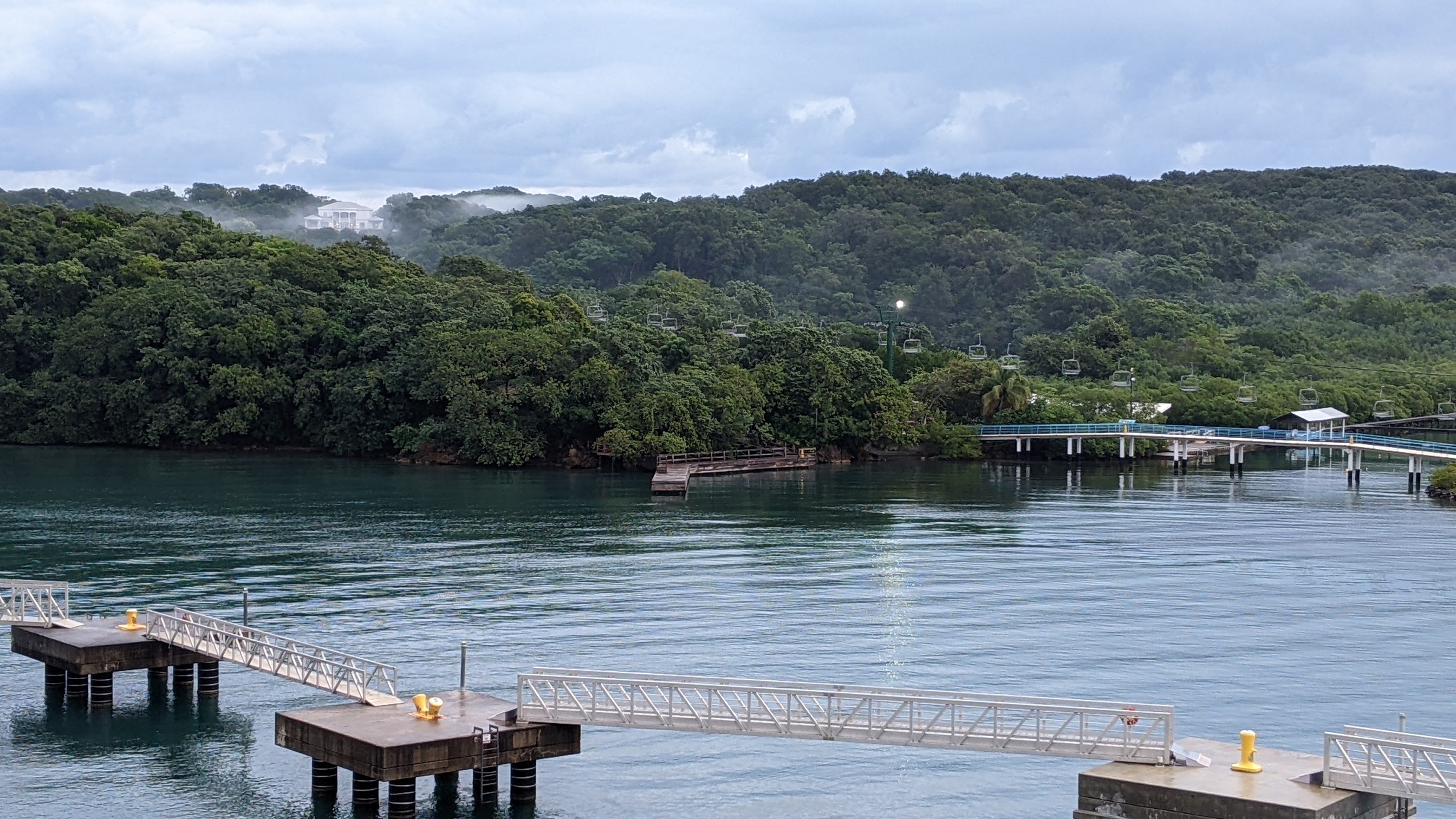 We docked early the morning of February 1 at Mahogany Bay, while the mist was still clinging to the folds in the forested slopes that extend down to the sea.