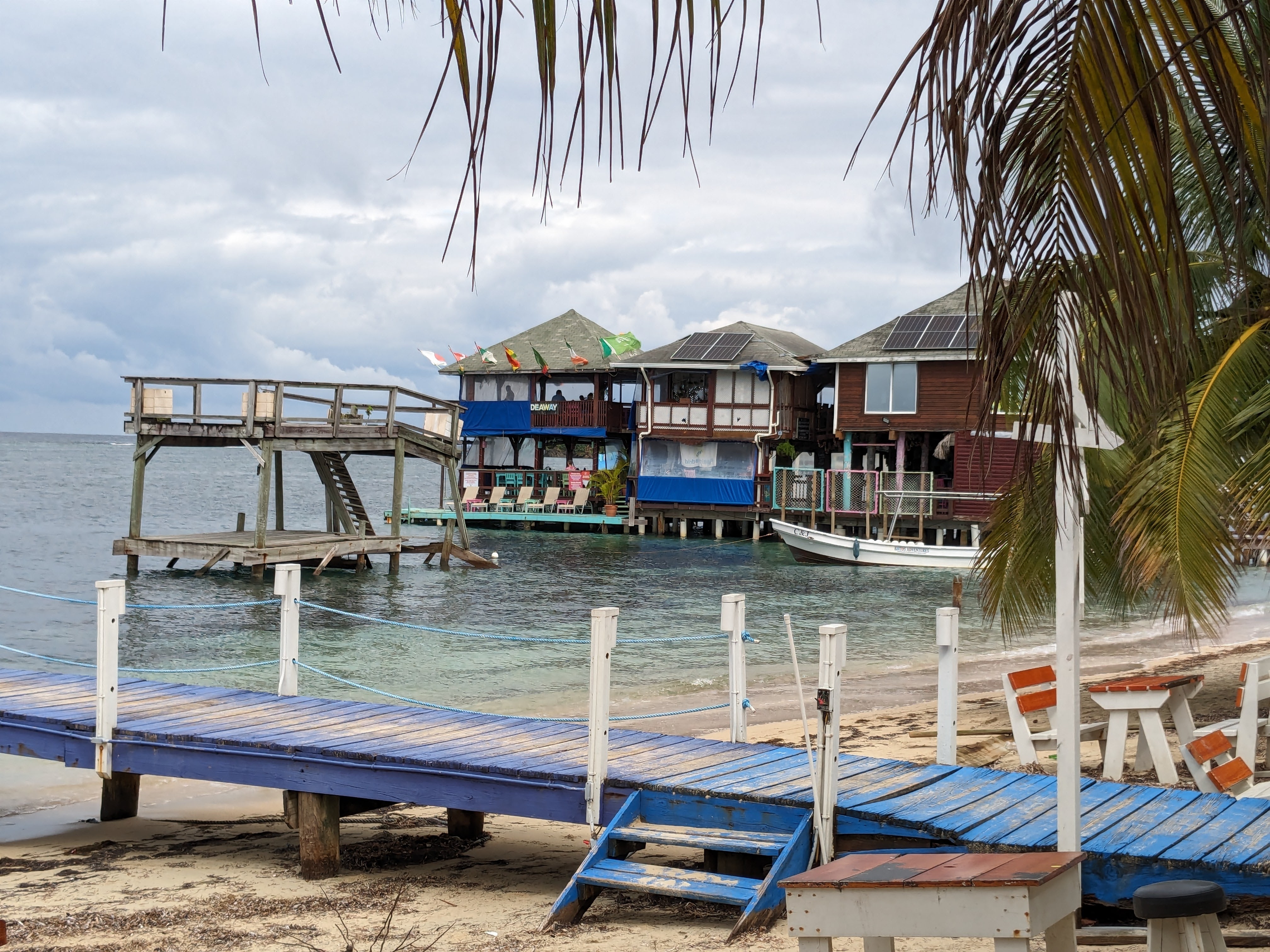Jorge had not forgotten our earlier request for a simple lunch. After confirming that we had little interest in cuddling a sloth or interacting with parrots, he steered us toward French Harbor, a well-known and popular part of the island. He promised us a view, and a meal, that we would remember. After only a little coaxing, he agreed to join us.