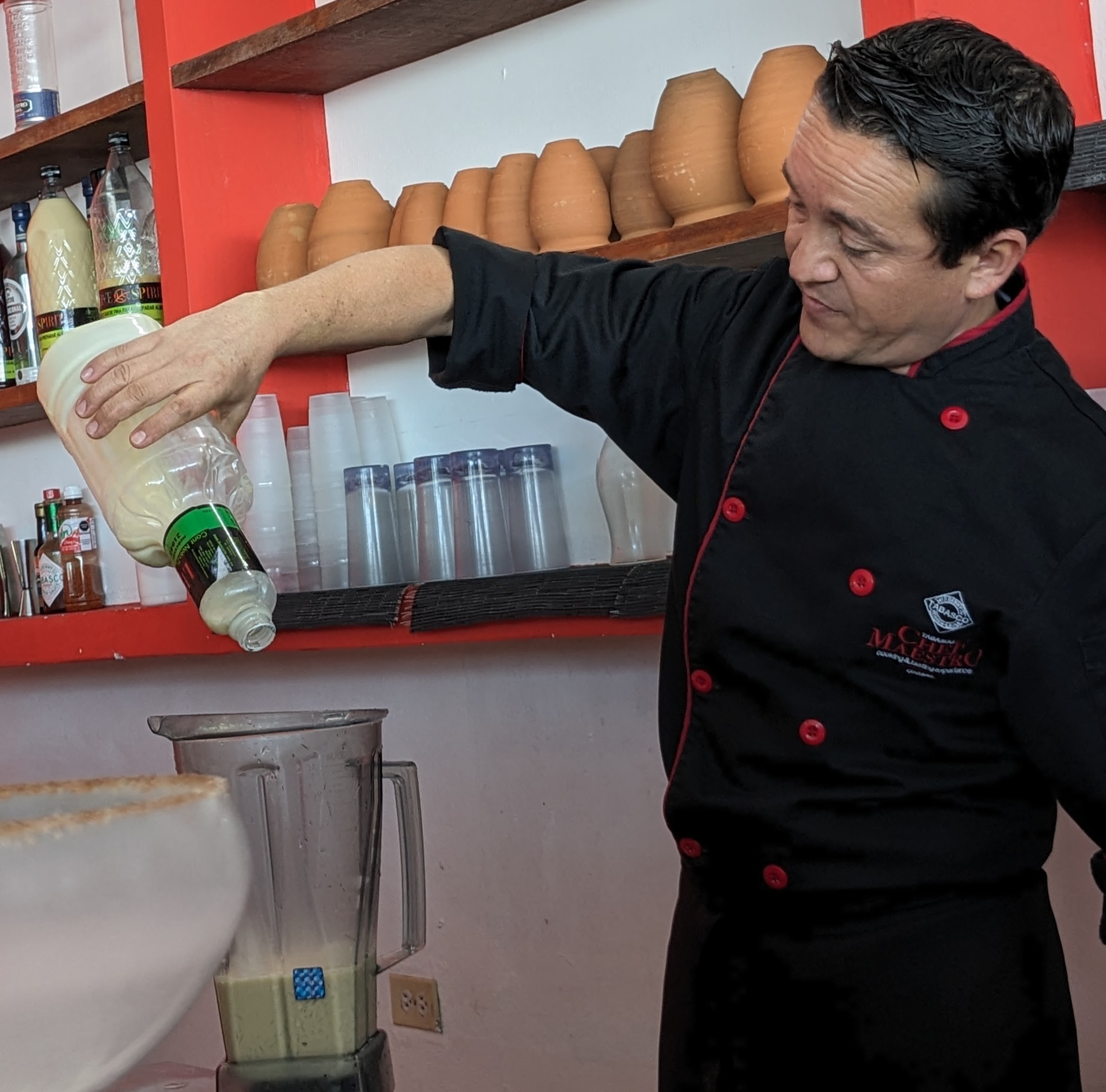 Then, Jorge steered us to a beachside cabana with a rustic bar and a few picnic tables. We sat looking out at the gentle waves and watched children and adults play in the surf while we sipped cooling drinks and asked more questions about life in Roatan. Jorge talked about his family, his wife, and his sons who work in the construction field.