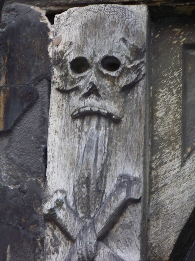During the plague of 1348, the area was used as a communal grave site for many of the city’s victims. Exterior timbers of the buildings that were later constructed around the perimeter of the site are decorated with skulls, crossed axes, shovels and other reminders of a time long gone.