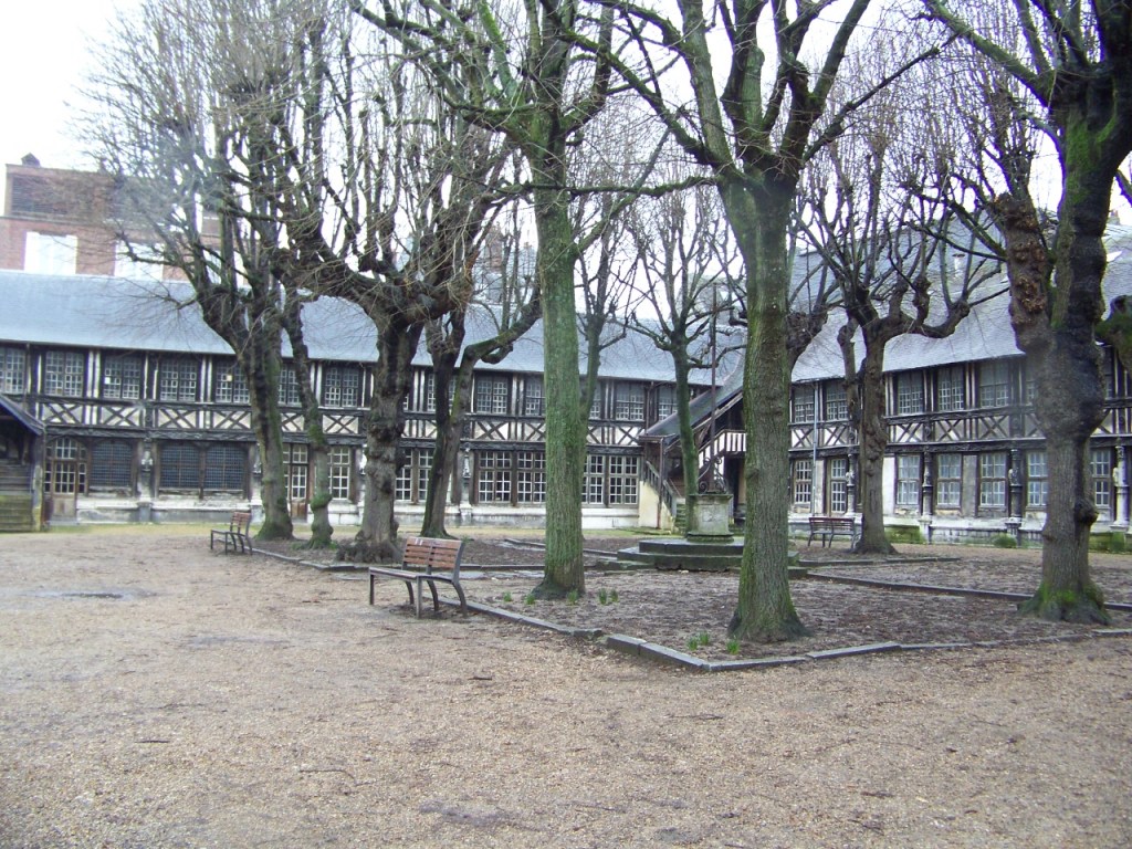 Aître Saint-Maclou is small square not far from the Church of Saint Maclou in Rouen. The massive Gothic structure almost seems out of place amid surrounding half-timbered homes and ancient lanes. Both have slightly macabre carvings that recall the grim influence of the Black Plague that swept through Europe and led to the deaths of up to three-quarters of the citizenry in this parish.